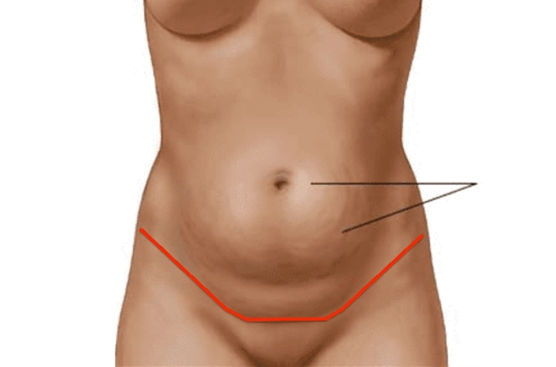 A cicatriz resultante de uma Abdominoplastia (dermolipectomia) localiza-se logo acima da implantaçãodos pelos pubianos, prolongando-se lateralmente em maior ou menor extensão, dependendo do volume do abdome a ser corrigido.